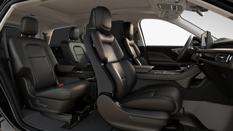 14 Speakers, 30-Way Perfect Position Seats with Active Motion, 3rd row seats: split-bench, 4-Wheel Disc Brakes, 40/Mini Console/40 Dual Captain's Chairs, ABS brakes, Adaptive suspension, Advanced Heads-Up Display, Air Conditioning, Alloy wheels, AM/FM radio: SiriusXM, Apple CarPlay/Android Auto, Audio memory, Auto Air Refresh, Auto Heated and Ventilated Driver and Passenger Seats, Auto High-beam Headlights, Auto-dimming door mirrors, Auto-dimming Rear-View mirror, Automatic temperature control, Black Exterior Elements, Body-Color Exterior Elements, Brake assist, Bumpers: body-color, Compass, Delay-off headlights, Driver door bin, Driver vanity mirror, Dual front impact airbags, Dual front side impact airbags, Electronic Stability Control, Emergency communication system: 911 Assist, Equipment Group 200A Reserve I, Four wheel independent suspension, Front anti-roll bar, Front Bucket Seats, Front Center Armrest, Front dual zone A/C, Front reading lights, Full Rear Console, Fully automatic headlights, Garage door transmitter, Genuine wood console insert, Genuine wood dashboard insert, Heads-Up Display, Heated and Ventilated Rear Seats, Heated door mirrors, Heated front seats, Heated steering wheel, HVAC memory, Illuminated entry, Jet Appearance Package, Knee airbag, Leather steering wheel, Lincoln App, Lincoln BlueCruise Equipped (4-Years Included), Lincoln Connectivity Package (4-Years), Lincoln Digital Experience, Low tire pressure warning, Luxury Package, Memory seat, Navigation system: Google Maps, Occupant sensing airbag, Outside temperature display, Overhead airbag, Overhead console, Panic alarm, Passenger door bin, Passenger vanity mirror, Power door mirrors, Power driver seat, Power Liftgate, Power moonroof: Panoramic Vista Roof, Power passenger seat, Power steering, Power windows, Premium Leather Front Captain's Chairs, Radio data system, Radio: Revel Audio System with 14 Speakers, Radio: Revel Ultima 3D Audio System with 28 Speakers, Rain sensing wipers, Rear air conditioning, Rear anti-roll bar, Rear audio controls, Rear dual zone A/C, Rear reading lights, Rear window defroster, Rear window wiper, Remote keyless entry, Security system, SiriusXM, SiriusXM with 360L (4-Years Plan), Speed control, Speed-Sensitive Wipers, Split folding rear seat, Spoiler, Steering wheel memory, Steering wheel mounted A/C controls, Steering wheel mounted audio controls, Tachometer, Telescoping steering wheel, Tilt steering wheel, Traction control, Trip computer, Turn signal indicator mirrors, Variably intermittent wipers, Ventilated front seats, Wheels: 21 Bright-Machined Aluminum with Dark Alloy Painted Pockets, Wheels: 22 Black Aluminum, Wireless Charging Pad.