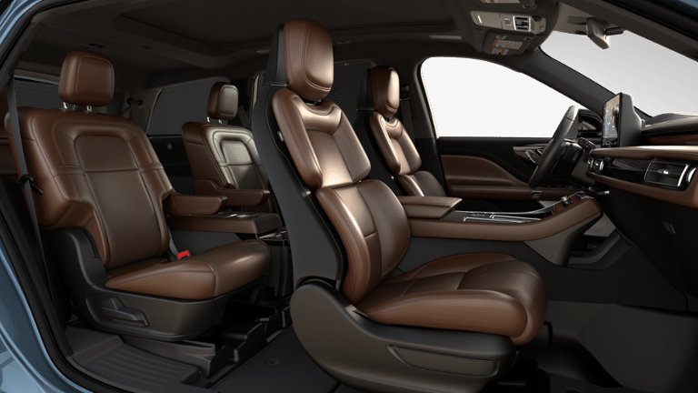 14 Speakers, 30-Way Perfect Position Seats with Active Motion, 3rd row seats: split-bench, 4-Wheel Disc Brakes, 40/Mini Console/40 Dual Captain's Chairs, ABS brakes, Adaptive Dynamic Bending Lighting, Adaptive Pixel LED Headlamps, Adaptive suspension, Advanced Heads-Up Display, Air Conditioning, Alloy wheels, AM/FM radio: SiriusXM, Apple CarPlay/Android Auto, Audio memory, Auto Air Refresh, Auto Heated and Ventilated Driver and Passenger Seats, Auto High-beam Headlights, Auto-dimming door mirrors, Auto-dimming Rear-View mirror, Automatic temperature control, Brake assist, Bumpers: body-color, Compass, Delay-off headlights, Driver door bin, Driver vanity mirror, Dual front impact airbags, Dual front side impact airbags, Electronic Stability Control, Emergency communication system: 911 Assist, Equipment Group 201A Reserve II, Four wheel independent suspension, Front anti-roll bar, Front Bucket Seats, Front Center Armrest, Front dual zone A/C, Front reading lights, Full Rear Console, Fully automatic headlights, Garage door transmitter, Genuine wood console insert, Genuine wood dashboard insert, Heads-Up Display, Heated and Ventilated Rear Seats, Heated door mirrors, Heated front seats, Heated steering wheel, HVAC memory, Illuminated entry, Illuminated Lincoln Star in Grille, Illumination Package, Knee airbag, Leather steering wheel, Lincoln App, Lincoln BlueCruise Equipped (4-Years Included), Lincoln Connectivity Package (4-Years), Lincoln Digital Experience, Lincoln Dynamic Signature Lighting, Low tire pressure warning, Luxury Package, Memory seat, Navigation system: Google Maps, Occupant sensing airbag, Outside temperature display, Overhead airbag, Overhead console, Panic alarm, Passenger door bin, Passenger vanity mirror, Power door mirrors, Power driver seat, Power Liftgate, Power moonroof: Panoramic Vista Roof, Power passenger seat, Power steering, Power windows, Premium Leather Front Captain's Chairs, Radio data system, Radio: Revel Audio System with 14 Speakers, Radio: Revel Ultima 3D Audio System with 28 Speakers, Rain sensing wipers, Rear air conditioning, Rear anti-roll bar, Rear audio controls, Rear dual zone A/C, Rear reading lights, Rear window defroster, Rear window wiper, Remote keyless entry, Security system, SiriusXM, Speed control, Speed Dependent Lighting, Speed-Sensitive Wipers, Split folding rear seat, Spoiler, Steering wheel memory, Steering wheel mounted A/C controls, Steering wheel mounted audio controls, Tachometer, Telescoping steering wheel, Tilt steering wheel, Traction control, Trip computer, Turn signal indicator mirrors, Variably intermittent wipers, Ventilated front seats, Wheels: 21 Bright-Machined Aluminum with Dark Alloy Painted Pockets, Wheels: 22 Bright-Machined Aluminum with Magnetic Painted Pockets, Wireless Charging Pad.