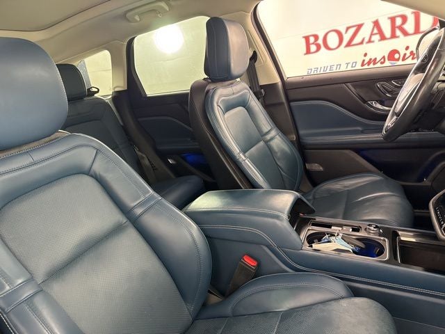 14 Speakers, 19 Bright Machined Aluminum Wheels, 3.81 Axle Ratio, 360-Degree Camera w/Rear Camera Washer, 4-Wheel Disc Brakes, ABS brakes, Active Park Assist Plus, Adaptive Cruise Control w/Traffic Jam Assist, Additional Rear USB Ports (Types A & C), Air Conditioning, Alloy wheels, AM/FM radio: SiriusXM, Auto High-beam Headlights, Auto tilt-away steering wheel, Auto-dimming door mirrors, Auto-dimming Rear-View mirror, Automatic temperature control, Brake assist, Bumpers: body-color, Compass, Delay-off headlights, Driver door bin, Driver vanity mirror, Dual front impact airbags, Dual front side impact airbags, Electronic Stability Control, Elements Package, Emergency communication system, Equipment Group 201A, Evasive Steering Assist (ESA), Forward Sensing System, Four wheel independent suspension, Front anti-roll bar, Front Bucket Seats, Front Center Armrest, Front dual zone A/C, Front fog lights, Front reading lights, Fully automatic headlights, Garage door transmitter: HomeLink, Heads-Up Display, Heated door mirrors, Heated front seats, Heated Rear Seat, Heated Steering Wheel, Illuminated entry, Jeweled LED Headlamps, Knee airbag, Leather steering wheel, Lincoln Co-Pilot360 Plus Package, Lincoln Star Media Bin Light Prem Ambient Lighting, Low tire pressure warning, Memory seat, Navigation System, Occupant sensing airbag, Outside temperature display, Overhead airbag, Overhead console, Panic alarm, Passenger door bin, Passenger vanity mirror, Perfect Position Seats, Phone As A Key, Power door mirrors, Power driver seat, Power Liftgate, Power moonroof: Panoramic Vista Roof, Power passenger seat, Power steering, Power windows, Premium Leather Heated Comfort Seats, Radio data system, Radio: Revel Audio System w/HD Radio & MP3, Rain Sensing Wipers, Rear anti-roll bar, Rear reading lights, Rear Removable Package Tray, Rear seat center armrest, Rear window defroster, Rear window wiper, Remote keyless entry, Reverse Brake Assist, Security system, SiriusXM Radio, Speed control, Speed-sensing steering, Speed-Sensitive Wipers, Split folding rear seat, Spoiler, Steering wheel memory, Steering wheel mounted A/C controls, Steering wheel mounted audio controls, SYNC 3 Communications & Entertainment System, Tachometer, Technology Package, Telescoping steering wheel, Tilt steering wheel, Traction control, Trip computer, Turn signal indicator mirrors, Variably intermittent wipers, Wheels: 20 Bright Machined Aluminum, Windshield Wiper De-Icer, Wireless Charging Pad.
